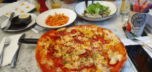 Read moreThe restaurant was busy when we arrived and the atmosphere was buzzing. We were seated very quickly and our server Angie was very welcoming and attentive throughout our meal. Service was qreat and Angie was so friendly and full of fun and energy. The food was excellent. Gluten free options are available and I can highly recommend the Mushroom and Truffle pizza. Of course the dough balls are a 'must' and the gluten free balls are delicious. There is a great choice of desserts and if you don't have room for one they can pop one in a box for you to take home. The manager, Rebecca, was lovely and along with our server Angie they both made sure our whole experience was great. We have now been to this restaurant with our family several times and always had a lovely time. My grandkids love it when we...