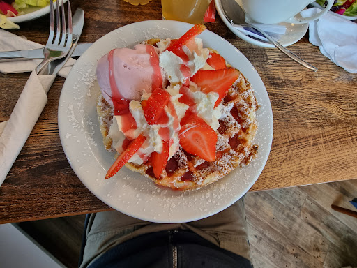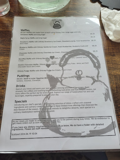 Read moreI went on a Saturday around midday, and it was a lot busier than I expected! They served hot drinks, but nothing cold except water. There are plenty of cakes to choose from, and the chef/owner is Egyptian, I believe, so there are plenty of unusual options!! We were a party of 8, so we all chose something different. The kids had toasted sandwiches, which were packed full of orkney cheese and other fillings, and also had the sweet waffles with ice cream. It's good to see the Orkney ice creams complimenting the food! We also had the falafel .. hands down Best falafel I've had, it was delicate, moist, and packed full of authentic flavours. I would go back just for the falafel!!! I'd say medium price range for a toasted sandwich, but we enjoyed the beautiful views and someone else doing...