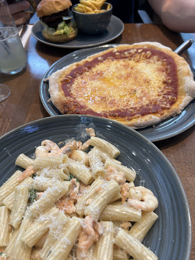 The prawn pasta was bland, and the bun from burger was cold. The fries, which we paid £5 for, were also cooked in oil that was far too cold – they looked and tasted awful. After we said we were not happy, the staff kept glancing at us, shaking their heads in disapproval. This was very unprofessional and made us feel uncomfortable. Mistakes happen, and we have the right to say if something is not right without being judged by the staff.