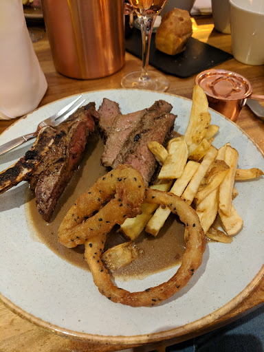 We were told all about the steak deal and decided it sounded good. We ordered ours medium rare - it was perfectly done. With chips each and we shared some onion rings. We went for the peppercorn sauce each as that is our favourite and a bottle of rose. Everything was done beautifully, the onion rings weren't just onion rings they had bite, they were delicious.