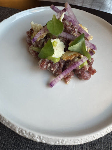 Read moreRestaurant set in the iconic old course hotel, looking out over the famous golf course and ocean (amazing views). Restaurant ambience and design gorgeous. Food decent - quite expensive for what you get but everything we ate was fine without blowing my mind. Starters of lamb tartare and spring pea curd, mains of beef fillet (cooked beautifully) and pasta, and a wonderful dessert of rhubarb, custard soufflé with pistachio ice cream (the culinary highlight!!). Service was a bit chaotic and unexpectedly lax for the level of restaurant and hotel. Had to wait really too long for every stage - order taking, plate collection etc - and most of the time had to prompt the server to come and do it. Feels like they have a mix of highly professional long term staff (who were great), and short term cover (perhaps students?) who were less well trained and not so good. Whatever it is, there was clearly a divide and it was a bit annoying when you’re...