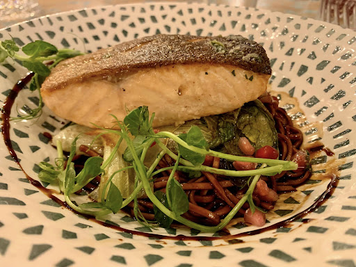 The ambiance of the restaurant is cozy yet sophisticated, with its industrial-chic decor and soft lighting creating the perfect atmosphere for a memorable meal.