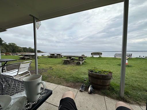 Read moreThis is a belter gaf. Its right on the beach but away from the road. Its got great outdoor seating area overlooking the bay. Some wild swimmers walked in in their dry robes for a brew to warm their cockles. Then we all watched a dolphin breach the water a few times, in eyeshot, no binoculars. Girl who works there says she sees it all the time. Also, there is a bit if grass with a goalpost next door and a caged basketball court to the side for kids to play like, and there was some balls I think and paraphernalia inside the caf....