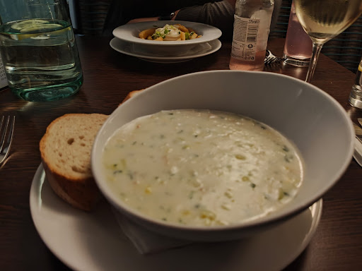 They have a wonderful menu, lots of seafood choices of course, but even some non-fish dishes. I can highly recommend the starters, particularly the chowder, scallop mousse, oysters and scallop specials. I had the pancetta wrapped hake for my main which was incredible, cooked to perfection. Others at our table had the half lobster with langoustine and someone else had the seafood stew. They were all cooked beautifully and they were delicious.