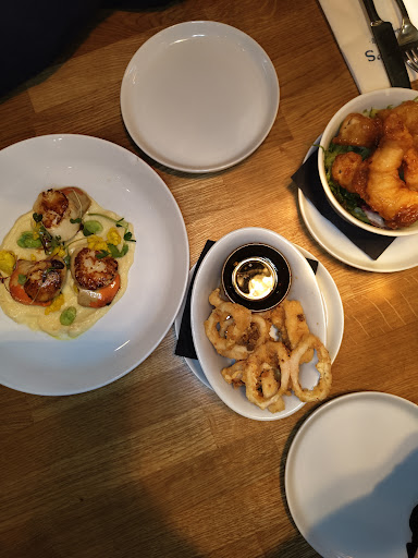 ย ย ย Read moreI was excited to try a local seafood restaurant (something we've been lacking in the southside). We ordered a selection of small plates to share as they sounded more appealing (mains were a selection of fish and meat dishes). We had the scallops, ceviche, shrimp, squid, ravioli, and loaded chips (we ordered the truffle chips but were given these instead). Highlights were: shrimp (these were huge and juicy with a nice crispy batter, lightly coated in a sweet chilli glaze). scallops (big and juicy with caramelised edges). ravioli (this was excellent, the pasta was fresh, the lobster filling was really well seasoned and tasty, and the thermidor cream was full of flavour but didn't overpower the dish). the salt and chilli squid was good, not over cooked and rubbery. I didn't enjoy the loaded chips (it had an American style cheese sauce on top) and the ceviche was nice, it also had some lovely fresh beetroot however there could have been more sea bass. I was driving so I wasn't drinking, I tried a sip of my partners pinot grigio which was nice, there was a bottle of albarino I would definitely order next time. The cocktail menu had a few interesting ones and we're reasonably priced. The restaurant is nicely decorated with a cosy feel, there is a small TV screen up on the far wall which was a bit distracting (I'm assuming it was for football?). The staff were nice and attentive, and the cost was quite good for what we ordered. I wouldn't say I'd rush back but would definitely visit again. I think it's a big plus for anyone...