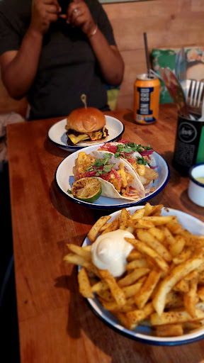 Now, let's get to the main event: the food! My partner, a burger purist, dove into the Classic. I, on the other hand, opted for the intriguing fish tacos and fries. I snagged a bite of the burger, and it lived up to the hype. It was undeniably juicy, with a perfectly seasoned patty that earned a solid 3.5 out of 5 stars. The fish tacos were flavorful as well, boasting fresh ingredients. However, they did veer a bit on the oily side, which wasn't quite what I was craving. The fries, however, were a revelation! Crispy on the outside and fluffy on the inside, they were seasoned to perfection and disappeared quickly.