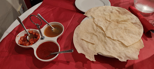 We ordered poppadoms and chutneys 2 currys, a pulaw rice and a potion of chips.