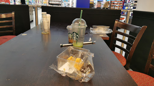 Read moreRelatively quiet at 10.45 on a Tuesday morning so was surprised at the terrible service especially with around 8 staff members on. Served by Brooke who rushed us through our order she then made us split the transaction into two as she Rang it through so fast. Had to navigate around 2 staff members talking at the counter. Ordered two croissants which our server forgot about had our drinks slammed down in front of us then went to sit at a dirty table and chair. Again 8 STAFF MEMBERS AND IT WAS VERY QUIET! Also if ordering a skinny vanilla latte it would be good for them to realise or ask that sugar free syrup should also be used. Also Starbucks it would be nice investing in some cleaning materials. The one poor person who was actually working was having to brush the floor with a broom with a broken handle and she looked quite...