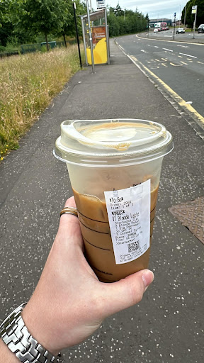 So ‘barista’ is from the English ‘bar’ with an Italian suffix added! Starbucks is blessed with star performing baristas including the charmers Azra and Taylor, who will talk on demand. Or even just without demanding. It's a bright coffee shop, with views over the national cycle route of Pacific Drive, within walking distance of Armadillo, SEC Hydro, Frame, Glasgow Science Centr, Premier Inn, Ibrox Stadium, STV and BBC. No dark roast coffee, but the blond is rich enough, and for cal-counters, a black coffee should ring up between zero and five calories. Nice way to avoid pricey wheat and sugar snacks, and try adding nutmeg, cinnamon or pumpkin powder...