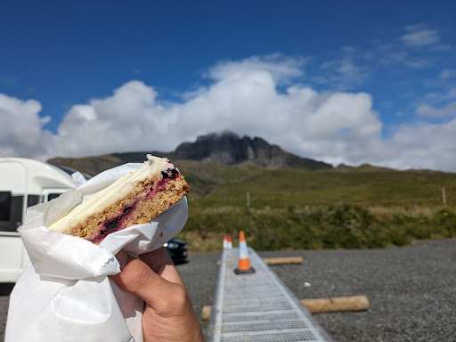 If your driving up in the car not planning to actually hike the Storr Trail then this is the ideal place. Stop.here, get some photos of the spectacular views across the Bearreraig Bay to Raasay, and of the Ol Man which isn't particularly discernable from this angle however you get man brillant views of it on the drive out where there are place to stop and get photos on approach. The coffee and cakes we had were brillant, really good quality and fresh and at very very good prices for a place with a captive audience at a major tourist hotspot....