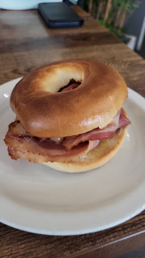 Called in for a coffee, partner had her usual americano, which met her aproval, I went daft and had a double shot flat white, which I have to say although obviously very strong, was much better than a lot of places that seem to forget what a flat white should be. I also had what has to be the best bacon bagel I've had in a long time, even the partner was surprised how quick I ate it. Loved it. Update. Went here again 5 days later and again the bacon bagel was so good. This time had a single shot flat white and again this place knows how to do a flat white, to many places now give you whats more or less a latte in a small cup....