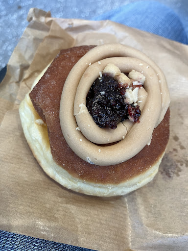 This is my third visit to Tantrum and other than the āold fashionā I haven't found their doughnuts to be better than any other bakery. I strongly recommend and enjoy any of the āold fashionā doughnuts as I enjoy the texture of the old doughnut and I enjoy that they are bringing the original doughnut back. I will always visit Tantrum whenever I am passing through Glasgow for an old fashion, if you havenāt tried one get yourself to Tantrum! Unfortunately though I generally find the big show doughnuts to be underwhelming. I first had the Salted honey ring, which wasnāt particularly salty or overly sweet, it was very similar to an icing sugar glazed ring. Maybe Iād just not picked a good one so I tried a Baileys doughnut and my wife ordered one of the Christmas ginger doughnut, there was a very strong to the point of overwhelming taste of alcohol in the baileys one and the ginger one had such a kick of ginger it was actually spicy to eat, neither were particularly enjoyable. Today I thought Iād give the jazzed up doughnuts another try as I do love peanut butter and jam. The doughnut was a lot of dry dough with a big ball of really sweet jam only in the very centre and on top of the doughnut there was a dry ring of some kind of peanut butter icing (which wasnāt nutty and kept crumbling off while I was eating it), by the time I had reached the centre of the doughnut I had more jam than pastry and eating the last half was just as unpleasant as eating the first. There was no peanut butter anywhere near the doughnut and biting into the centre was similar to putting a heaped tablespoon of jam...