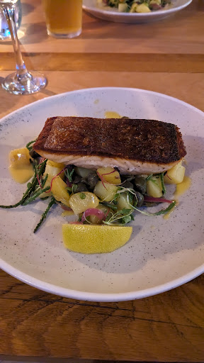 A-MAZ-ING!! Of all the places we ate on Islay, this restaurant hit it out of the park. The chef is so talented and the flavor profile is incredible. I was tempted to lick my plate. 😆 we started with olives & paper thin cucumber slices steeped in gin, which I promptly added to my gin for a self made martini! We also had the halloumi fries and the chicken bites- middle eastern flair with taziki type sauce- so delicious! For mains, we had the vegetarian pie (I’m not vegetarian, but the description was so interesting, I had to try it- I was not disappointed. It was full of flavor!) and my hubby got the fish. It was super crispy and spot on. My dessert was a vanilla panna cotta with rhubarb sauce and crumbled cookie - WOW! Just WOW! And my hubby had the chocolate cookie ice cream. This place is a ‘do not miss’! I often take pics and include them. I think I was too busy enjoying this experience. ☺️ Sorry, no pics. If you visit, CHEERS, to an...