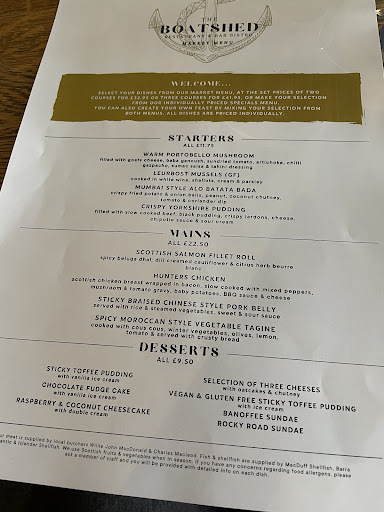 Read moreStaff were absolutely fab, before I say anything else. But, unfortunately I was extremely disappointed with my dinner. I regularly eat from the boatshed without any complaints but I was extremely disappointed with my meal this time round. Our starters were great, langoustines were great as per usual but very very little meat. Venison soup was absolutely fantastic! Unfortunately the main was poor. We ordered sirloin steak and feather blade beef. Sirloin was very tough, with the only option of gravy, not peppercorn sauce. It was a very average steak but for the price very very poor (£32). The feather blade beef was very tender but very bland, no flavour. Not many vegetables on the plate and bland mash potatoes. Our pudding was unfortunately the worse of all. We both order a white chocolate and raspberry cheesecake and I first noticed the puddle of water that surrounded the crumb base. The cheese part of the cake was warm and felt almost curdled. No flavour, no chocolate taste at all. The plate was also warm and the cheesecake felt very warm. Unfortunately I feel the cheesecake was defrosted as it also came very very quickly (5mins). Our bill came to a total of £135 which i felt was totally overpriced! As for our drinks aswell, our strawberry daiquiri was just a glass of ice. I am so disappointed as I do love the boatshed very much but I was not impressed in the slightest, as it’s definitely overpriced! Great service but...