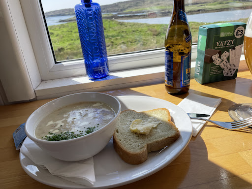 Read moreIt was a Sunday and the only place open so it was quite busy. I think they were understaffed. The woman running the restaurant was curt in her communication "I need to catch up/we'll get to your when we can" and could work on some customer service skills/friendliness. I appreciate she was busy. But just smile, offer a table, and let folks know you'll be with them as soon as possible, and do so with some friendliness...Maybe it's just the end of season and she's done. The meal was good enough. The serving size was quite large (chicken dinner), the veggies were very nicely done/flavored, but the chicken was quite dry. The coffee was great but the highest priced I've seen yet in the Hebrides at 4.50£ for an Americano. The young fellow helping out was lovely and trying very hard. It was nice to have somewhere (open) to get out...
