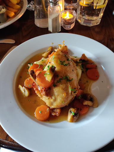 We came here for something to eat after taking our granddaughter to her Rainbows meeting as usual. We hadn't booked a table, but were able to get in, which was fantastic. Therer was an outside metal staircase to climb as well as a few internal stairs, so it could cause difficultes with someone who has mobility issues, although I did notice a downstairs restaurant, which was not open at that time. My husband chose the mushroom soup of the day and I chose haggis filo parcels with a whisky sauce to start with. I personally found the sauce a bit thick as it didn't pour very easily. Nonetheless, both starters were cleared from our plates. We both chose the beef and mushroom stroganoff with sautéed potatoes and topped with crispy onions. The stroganoff was sitting on top of the potatoes, and the sauce was absorbed into them. However, I wish the crispy onions had been more crispy to add more texture to the dish. My husband had a large glass of red wine and I drank hot water, which I had asked for. The surroundings were lovely and staff attentive, but as the restaurant got busy, the noise increased a bit, which after a long day at work is not always the best for me personally to cope with. All in all, I would really recommend this restaurant and we will definitely visit again. After all, there are many more dishes on the...