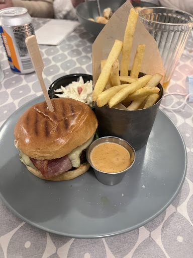 The main negative to bring our review from 5 stars to 3 was the slowness of the service. We were a table of two adults who arrived when every other table had finished ordering or was empty. There were about 5 waiting staff. We waited for ages to order drinks, one arrived, and the other arrived 10 minutes later. We ordered food, the fries from the order were missing. We didn’t manage to attract attention from the waiting staff so we just ate the food we had. No one asked if the food was okay (it was really nice!). When they took our plates away we asked for another drink and the bill. We didn’t receive the drink or the bill!