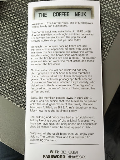 Read moreAmazing service and amazing food!!! The staff here go over and above for their customers! I had fallen ill and needed a birthday cake for my husbands birthday đ it was late and the JJs bakers were closed. The staff at The Coffee Neuk called JJ bakers on my behalf, asked the staff to make me a cake overnight, then the Coffee Neuk girls picked it up for me in broxburn and took it to their cafe in linlithgow where I took my husband for his birthday lunch. The food was excellent and so were the milkshakes. The staff were lovely and showed fantastic customer service! Between the fajita, milkshake, and cake he loved his birthday. Thank you so much ladies....