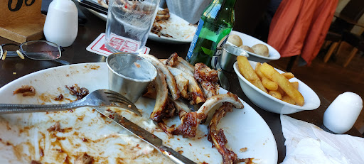 The burger was thick and chewie, gristly, like you would get out a greasy spoon cafe or burger van, the onion rings are just frozen onion rings like you'd buy out of Tescos, tiny and soggy. The chips were the one thing that we all enjoyed.
