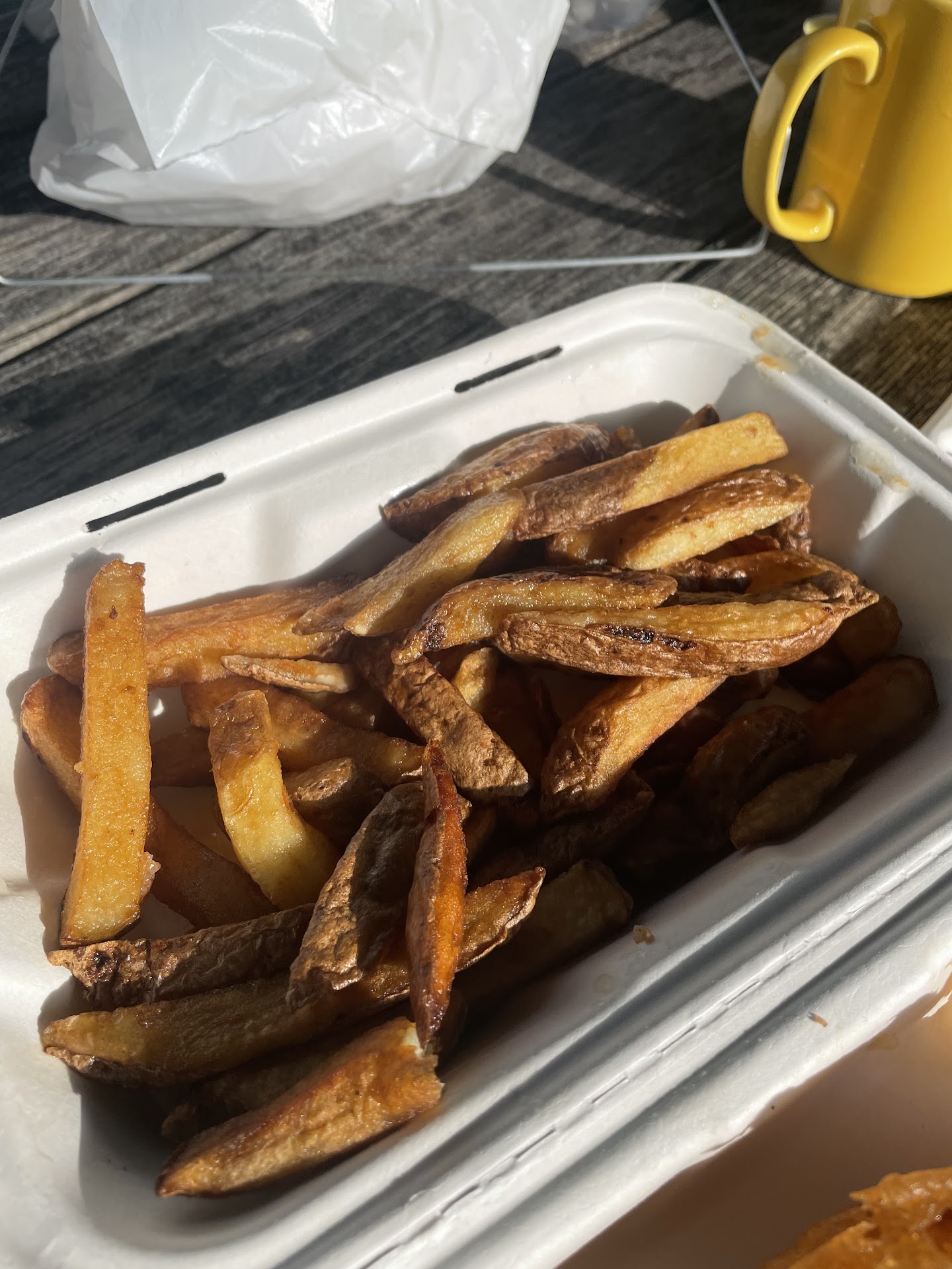 Our recommendation is to take an insulated bag with you for the food, not forgetting the complimentary condiments at the till and take the short walk to the seats in the harbour and enjoy the food al fresco, always the best way to enjoy fish and chips.