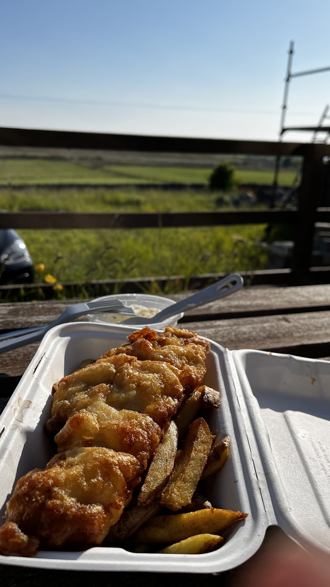 We enjoyed freshly cooked very fresh fish and chips from the Cottage Cafe.