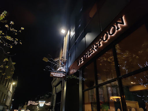 First time at this wetherspoons and will be the last. Sat down at a booth table on the bottom level and was snowed on with dust coming from the air vents above. Had to dive and save my friends food from a huge piece of dust that fell. I ordered a portion of 4 onion bhajis and a different dish of 4 poppadoms that is supposed to come with Chutney and side salad. When they came the two dishes were in one bowl, there was only 2 poppadoms stacked on top of one bhaji and burnt crumbs… there was no salad and I was instructed to go and collect my own mango chutney, which is fair enough but the menu says it comes with. I sent it back as it was like a joke and when they brought it out again they gave me a normal 2 bhajis and 2 poppadom. Still not the full dishes. I was refunded by the manager for the food and received the extra 2 bhajis and a half hearted tomato and onion salad. In the end I could barley eat it as it felt as if the kitchen staff had no clue what they are doing and no care whatsoever. Also had toilet issues that night which I’m pretty sure is from there. Also I’m a regular at wetherspoons elsewhere and have had the same Tommy’s Margarita over and over. This is this first time however that it didn’t come with a Lime slice which was very disappointing. The only reason for my 1 star review is due to the fine toilets, which surprised me after everything I received prior. At least the cleaner knows what they’re doing. Also the atmosphere on the higher level seemed better. DEFINITELY avoid on curry club day (Thursdays) and try to avoid...