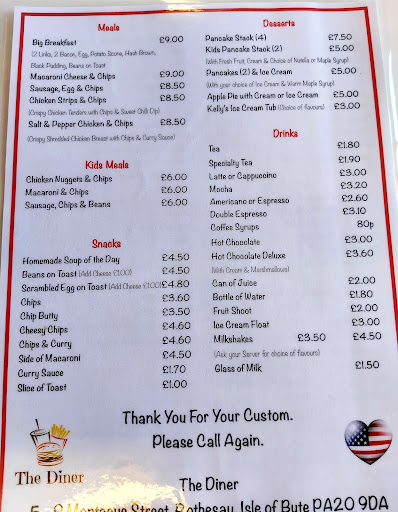 Read moreVisited yesterday morning before catching the ferry home, I visit bute 2-3 times per month I previously eat at the diner when working on bute and was very satisfied with food and service, on this occasion the food was of a high standard however service fell short the young lady server was quite abrupt not nasty but by no means friendly, we've all had a very bad 18 months we should be working very hard to build our business and get our customers pooring back, a smile and nice to see you again approach is...