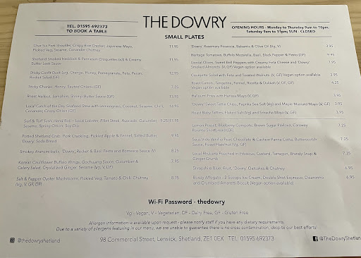 Read moreJust had a nice dinner at The Dowry, which has a lovely modern and unpretentious, informal ambiance, and is located in the heart of "old town Lerwick". I had the Shetland Haddock fish and chips paired with an Italian pilot grigio. The haddock was delicious, lightly-battered, and fresh tasting; the potato chips were crisp and perfectly flavoured. There was a serious problem at the kitchen and the food took overly long to arrive. Kudos to the staff, two of them, who apologized profusely for the delay, and they offered a complementary item (beverage) without hesitation. Overall, it was an enjoyable dinner experience, thanks to good food and a solid customer service ethos, well delivered by the staff members involved. We recognize that things can/do go wrong in the customer service business but "how staff are trained to make it right" for customers matters. Well done, The Dowry! Keep up the good work! Highly...