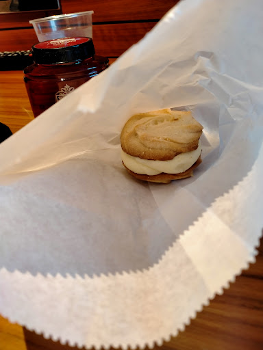 An amazing find! Stumbled across this place walking from car park across the river when looking for lunch prior to a walk in hills around Peebles. Attracted in by the name my discerning mate visiting from Oz did the buying whilst I waited outside with the dog. We tried a few things (chilli and cheese bread, rosemary focaccia and doughnuts) with no knowledge of prior reviews. All were brilliant and the doughnuts in particular were to die for although with so much jam some finger licking afterwards required. We were so taken with it we organised our walk the next day out of Peebles only to discover it is only open every other day (never mind the butchers/bakers on the main street is...