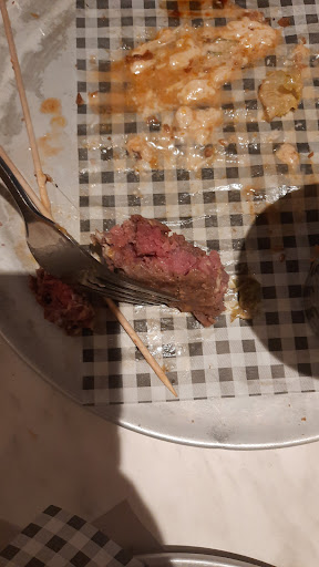 We called over the waitress from before who was very helpful, and told us that the burgers are rare because they are cooked American style. We were, at first, satisfied with that. But the more my boyfriend ate, the rarer it was in the middle. He left that chunk behind to show to waitress, just to let them know. The waitress was extremely apologetic and took the food straight to the kitchen to show them. We were given a free dessert to make up for this.