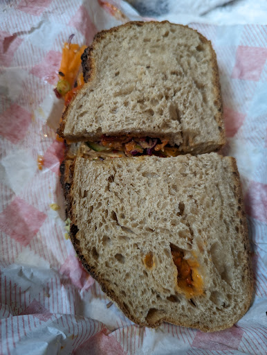 Standouts for me are the Cuban sandwich with pulled jackfruit, the curried cauliflower wrap, the banh mi, and the Green Goose salad. I recently discovered their leek and potato hash brown as well, which was another winner.
