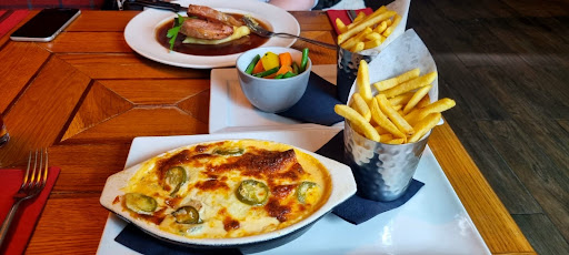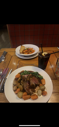 One of us opted for the prawn cocktail followed by roast beef while the other chose the roast beef followed by apple crumble. The prawn cocktail was nice albeit a small portion. The main meals arrived in a ‘tower’ formation which included one Yorkshire pudding, two halves of roast potato, four small brussel sprouts, a few pieces of carrot, two slices of thinly cut roast beef and some gravy. The apple crumble topping was a layer of toasted oats and was served with ice cream. Unfortunately we were unable to eat the roast beef due to the meat being pink and not to our taste however, afterwards the really nice waiter took time to explain why it was all cooked medium rare and if we had wanted it cooked for longer it would have been possible. Sadly this information was not on the menu and we were not told at the point of ordering. After we received the bill the waiter returned to change it so that £8.37 was deducted leaving £27.53 to pay for the Yorkshire pudding and vegetables - obviously starter, dessert and drinks on...