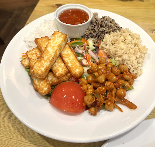 We weren’t particularly hungry, so we ordered the cullen skink and the super salad with halloumi. The cullen skink was freshly prepared and chockful of potatoes and leeks, but it was the super salad with the deliciously panfried halloumi, chickpeas, quinoa, oats and rice over salad that surprised us with how tasty it was.