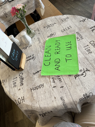 Cash only. The only place I found serving hot drinks (I think there’s another cafe along a different street). I ordered Victoria Sponge, & could see it in the glass cake cabinet, but was served butter cake with buttercream icing in the middle “There’s your Victoria Sponge”. It was nice butter cake. I didn’t have the time or energy to get them to change it because I had a bus to catch, but: not what I ordered. The tea was nice, & very hot. Inexpensive. They must have a lot of customers because the tables are close together. Half of them were full when I went. They have a sign for wifi, but I...