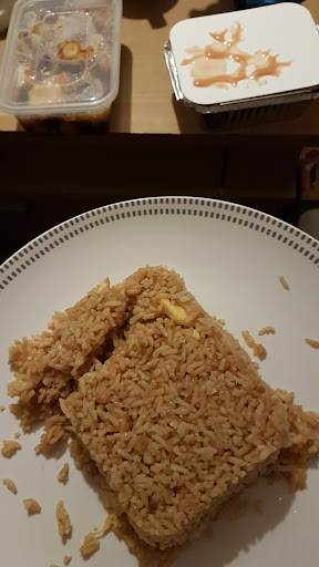 I strolled in here in the mood for whatever fried rice they had on the menu. I went for the "new dragon special" rice. Which was described to me as; "mixed meat, with prawns, rice and egg". None of this being on the menu. Never to be daunted by mere rice your brave narrator decisively, and handsomely, ordered without a quiver of his lip. When it arrived I can only successfully describe it as being pretty bad to look at. The rice felt like it had come out of a packet from Iceland. The chicken and pork, instead of being shredded or chopped like every other place I have ever experienced, were basically entire slabs of fairly plastic tasteless meat. They seem to have been thrown on top of the rice instead of being cooked together which is odd for the entire idea of fried rice being it gets cooked together. Then ontop of the fairly awful hunks of meat they had placed an omelette. Not much you can do wrong with an omelette so that would probably have been fine. Except the next layer was to basically throw about 3 mugs of gravy over the top of the lot. Would you ever pour gravy on an omelette? The entire thing was smothered by that one flavour and then you had the horrid consistency of the meat to deal with. I am sure I maybe caught the guy on an off night but that was so awful that I felt compelled to...