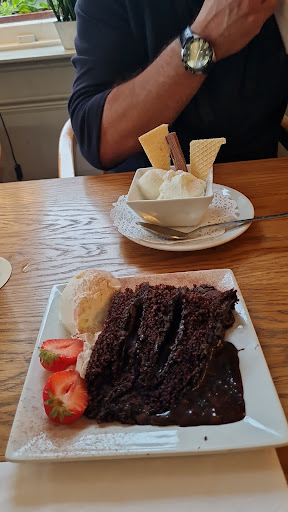 We booked a table for Sunday roast and the friendly girl on the phone explained that they serve it up to 5pm but could run out before then and the full menu would be available until 7:30 pm. So she booked us in for 4:45 and she would let the chef know we hoped to have Sunday roast. So we arrived on time, another couple too at the same time and were the total number in the restaurant. We were shown to a table for 2 and my seat was right in the way of the waitresses coming in and out and very close to the door to the beer garden, even though there were better tables available. Not a good start. After taking drinks and meal orders from the other couple who hadn't booked, a waitress took our drinks order, a beer for my husband and sparkling water for me. I intended having a glass of wine with my dinner. When the drinks arrived we ordered our meals and were thankful beef Sunday roast was still available. After quite a long wait our dinners were served to us with a little jug of extra gravy. No communication from the waitress, no enjoy your meal, would you like anything else, she was off down the stairs. So I didnt get a glass of wine. The food was hot and well presented and a good portion of beef. Bit strange though to have mashed potatoes, which weren't creamy, a roast potato, (with a strange flavour), and a whole boiled potato in its skin. The other vegetables were al dente but fresh. We did finish our meals, (my husband finished what I left lol), and another young waitress took our empty plates after asking "Are you finished?" Again she was away down the stairs. We sat digesting our meal, and overhearing the conversation going on down in the bar between the staff and someone local, hoping we would be asked if we would like a dessert, coffee. No it didn't happen so we went down and asked about paying. A girl took payment and put 2 chocolates on the counter without saying anything! So we paid, took the complimentary, we assumed, chocolates and left. Those girls working in this establishment need training on hospitality, social skills, how to contribute to the restaurant making profit from drinks and desserts. The girl who I spoke to on the phone was great so one of the staff has hospitality skills but don't know where she was during our visit. The management are letting customers down and their staff!! The one thing I learned from this is how great my Sunday roast is and in future save money, cook at home and enjoy a bottle of wine and a...