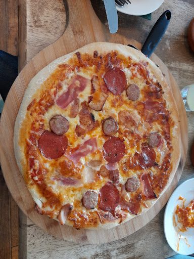 The kids were catered for with a gluten free base and vegan margarita, which they all promptly polished off along with a portion of home made fries, my wife had the firey veg vegan pizza and I had the meat extravaganza, both of ours were 12" and the kids shared the 10". All of our pizzas were delicious, we got both of our remainders to go along with a slice of vegan chocolate cake.