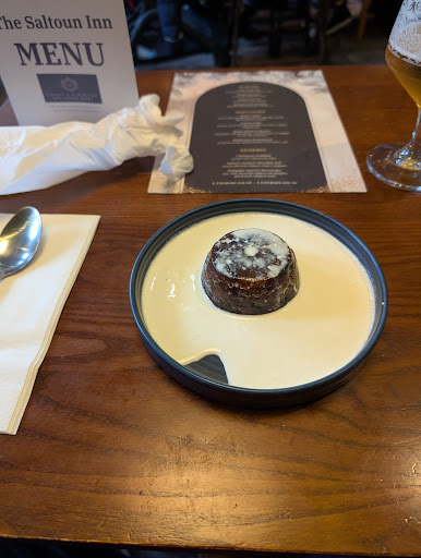 Read moreMoved to Fraserburgh in August but hadn't eaten out anywhere other than the Wimpy until today, when I visited to sample the Xmas Menu.||The price was £19.50 for a two course meal or £22.95 for three courses, so not wildly over-priced in this economic climate.||Had the Jingle Bell Beef Burger with brie cheese, cranberries and stuffing. The burger was cooked well, was a decent thickness and the toppings all worked well together. The chips were your big standard frozen fries, which was a shame really. Does no pub hand make chips anymore? Could have also done with a salad on the plate too in order to add some colour. Not disappointed with it, just constructive criticism.||My second course was Xmas Pudding. I don't like brandy sauce so they were happy to serve it with cream for me. I like Xmas Pudding most of all the Xmas food so devoured it quickly. Again, one slight bit of constructive criticism is that the pudding would have looked less lonely on the serving plate if it had been served in a bowl instead. Taste is what matters most though!||Drinkwise I had a Cruzcampo lager. Not had it before but would drink it again. Came in a very nice branded continental style pint glass.||The Saltoun Inn itself is nice inside. Of course the festive decorations were still in situ and as it was busy there was a bit of wait for my first course. I don't mind that and understand it when it's busy.||The staff were friendly and I would eat...