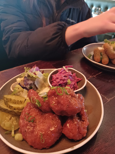 Read moreUnfortunately really disappointed by our experience. I was hoping this could become a new local with it having such a good food and drink menu including lots of vegetarian options and being dog friendly. But sadly it took just far too long for anything to come, the tables were sticky and dirty and the food wasn't great. It took 30-40 mins after ordering food for us to be told there was in fact no soup for starters and within this time our side of onion rings also didn't come ( we had asked for the onion rings to come out as a starter) .Another 30 mins after this we were still waiting for hot dogs , fish and chips and onion rings. The hot dogs were fine when they did come but took well over an hour for them and the fish was mostly batter, tiny amount of fish within the batter and the bread and butter was just a bit of stale cold toast with no butter . The onion rings came another 5-10 mins after the mains were served and were burnt and dry. Really disappointed and we did politely tell our server all of this. Maybe it was just a bad day being a bank holiday but the place wasn't busy to even slightly justify how terrible the food experience was. I wouldn't return unfortunately and I really wanted to like this place. Nice decor and style but unfortunately seems to be style...