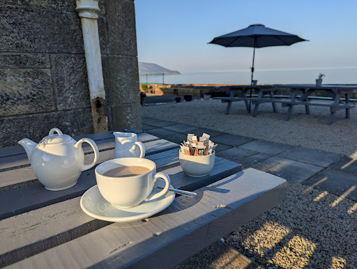 We only had drinks, so can't comment on the food. The downstairs bar was full of folk watching football (a pool table seemed to take most of the space) so we tried upstairs in the bistro/restaurant. It was half full but although okay to have just drinks we weren't offered a table and sat on sofas, which were okay. Drinks nice enough, staff polite but a strange atmosphere in there (quite rowdy and loud for a bistro) . Still half full when left so could have had a table for an hour with a little initiative shown. The only place in Whiting Bay so give it a go but I assume Saturday is not the best time for a casual...