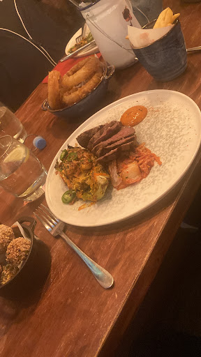 Found this place by accident on a trip to a Glasgow to see Wishbone Ash playing at the Ferry. Dropped in for a bite to eat, greeted by friendly staff and shown to a table. The eating area is lovely to sit in, had a few bottles of ice cold Corona with fresh lime to flavour. My friend had the burger and huge it was…the chips along with it tasted amazing, I had the steak pie, came in a crockery pot, complete with marrow bone to flavour the gravy. It was excellent, full of meat and came along with mash, roasted carrot and parsnip, broccoli and green beans….highly recommended. It was so comfortable and the staff so helpful that we stayed for another bottle of beer. As we left the bar and eating area had filled up, so customers must know about it… all in all I’ll be back when next visiting….hopefully Wed 19th April when Joe Bonamassa is playing in the Armadillo...flying over again...well I dropped in again that Wednesday, . Not quite as good as before, as there were some items not available on the menu, but had the steak pot again, lacked some veg that I had before but excellent anyway. My friend had the Caesar Salad, had the chicken done to his specification (not too hot) and the service was again outstanding.. back again 15/5/23.. menu again updated, my friend had the ribs, I had buffalo chicken wings with chips as default with both items.. plus the usual bottles of Corona. Went down a treat...