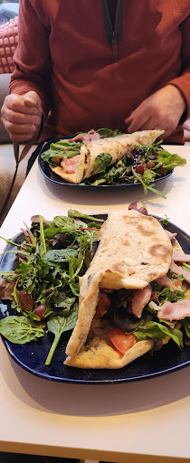 I had hummus with salad and bread, the side salad dressed with a quality balsamic vinegar and the unusual addition of raspberries.. A real discovery! Delicious!