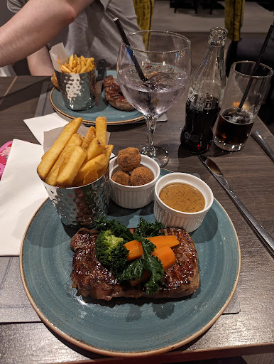 Recently. Dined in this restaurant twice in two weeks. First experience was a delight. the food was fantastic and cooked to our specifications. The kids meal. Pizza and garlic bread was excellent in that my grandson ate everything on his plate. I was so pleased and thanked the staff for excellent service and food. However. Just went back today and was severely disappointed. It was busier than last week so therefore my daughter and I made allowance for the hour and quarter wait for the starter. My grandson was with us and I had to ask for a slice of bread and butter to get him something to eat whilst waiting. The starters came out and my prawn cocktail tasted of washing up liquid and she chicken tempera was pink when my daughter broke a bit to give to my grandson. My daughter had eaten most of this and now feels ill (feeling nauseous and stomach sore). The main course came out with both steaks not being cooked properly. We had asked for steak to be well done this was pink. When staff came over for plated I advised that both steaks were not cooked to our preferences that they were both pink. The waitress advised she would pass this on to Chef. The best part of the meal turned out to be the sweets. However my daughter advised she found dirt on the raspberries in her ice cream sundae. On paying the bill there were no allowances for the full cocktail going back or the two main courses ( only chips and part of steak that wasn't pink) going back uneaten. Totally dissatisfied and still hungry believe it or not as hadn't really ate much apart from chips.