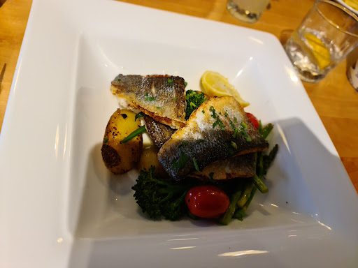 We were starving and had no where to eat. I rang and asked for a table for three. They said yes, result as we were around the corner and turned up 5 minutes later. It's not a big place and from the outside we were thought we would get a light bite or sandwiches. How wonderfully wrong we were. Garlic Prawns for starters yum. Followed by the most buttery baked Sea Bass with potatoes, asparagus and green beans. Truly beautiful. Zar went for the medallions of pork served with black pudding, crushed potatoes and brocoli stems, amazing. Our wee monster had and I quote the best breaded fish and chips ever. Can't recommend this...