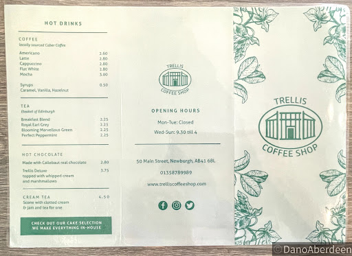 We visited Wednesday 9th June 2021 for lunch, we pre booked for 1pm , arriving on time we met a very nice member of staff who welcomed us and showed us to our table, Trellis is a new Cafe - Bistro recently opened hence our decision to visit . The venue was busier than I would have expected for a Wednesday however it is new, well lit inside with fresh decor and a welcome new business to Newburgh, it was comfortable with good Covid measures in place . We had a menu and our drinks order taken within five minutes of being seated, drinks served our food arrived within 17 minutes. Personally I found the limited menu not exactly what I would like to peruse when out for lunch especially when little ones are joining us on school holidays for example or for under fives, Newburgh Hotel do as does Beachside Coffee shop in nearby Balmedie cater for little ones , though maybe I misunderstood the Trellis business model .