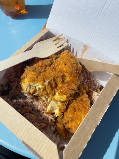 I was just thinking about trying out Caribbean style food a day ago, and was disappointed that there was none near where I stay (Livingston). Decided to go out to see the blossoming cherry trees today in Dollar, and after the endless amount of pictures we took, decided to look for some nourishment, and this was what popped up first in Google Maps. It's a small but mighty place. The lady behind the counter greeted us with a big smile, and helped us make a decision as I wasn't sure what's good to try first time. I got a box of fried chicken with coconut rice and an extra sausage along with sweet sauce, spicy and hot mango sauce. The chicken was fresh, crispy and ever so slightly spicy. All 3 sauces played well with it, but the mango hot sauce was an absolute winner. The sausage was great too.