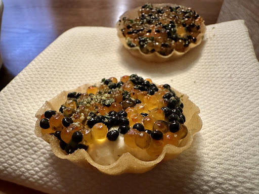 The canapes, they were agreeable but not exceptional - from the overpowering cheese with a beetroot meringue to the below standard gougere (our banqueting wedding caterer supplied something 10x the quality). This was followed up by a tuna tartare, which, credit where credit is due, was brilliant. Sadly it was downhill from there - my scallop was stone-cold and raw, whilst my partners was cooked but also cold. Whilst we questioned this with the host, they all argued this was cooked to temperature and nothing was wrong with it. We were repeatedly offered spoons for cold courses, which really produced the feeling of being a toddler eating real food for the first time. The black cauliflower made my mothers cauliflower look raw (and she loves overcooked veg) - we appreciate that cooking out cauliflower can produce a nuttiness, but when you take it too far all is lost, however, thankfully the crispy onions brought a little texture to another lacklustre dish. The cod dish was something that excited us prior to eating, though again this was cold and we were expected to eat with a spoon - upon requesting a fork, we were scowled at, and by the time this came a luke-warm cod was stone cold; the gnocchi that accompanied this was pure stodge and frankly inedible. The remainder of the meal? Backstrap of venison and was sold as fillet, and despite being soux vide was tough - quite an achievement. The rice pudding as a side to rhubarb was cold, and not an experience i wish to repeat (the meringue with cardamon and ginger was lovely, but made unappealing by the rice stodge below).