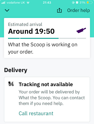 Literally waited more than 2 hours for this delivery PAST the estimated arrival time ( est. 19:50 ). It’s 22:21 as we speak and still nothing but a notification that it has been delivered?? No it hasn’t. There was no indication that they were no longer delivering as the restaurant CONFIRMED THE ORDER, and it had a full page promoting itself. Thankfully got support from the company i ordered from and got a full refund, but i won’t be ordering from a place that plans to take my money and give me nothing in return. Feel scammed, and it absolutely wasted more than 2 hours of my time for nothing. DO NOT ORDER FROM HERE! Would have given 0...