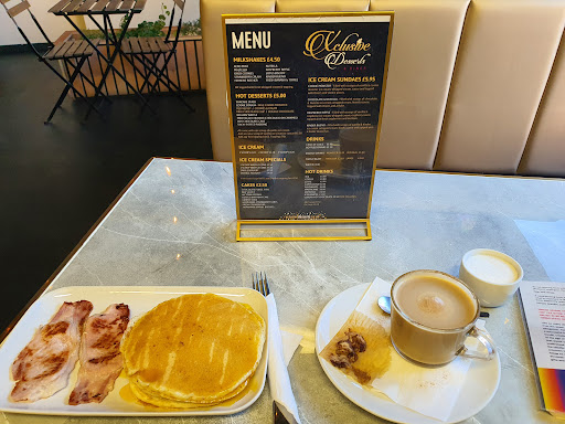 Absolutely love this place. Had the pancake stack and thought I could not possibly finish it... but... it was so good I could not stop eating. I would ask them to keep even a small carton of soy in the fridge... but the Cappuccino I had was excellent. Their prices are way below the average price out there for cake ... £2.50? Wowzers. A Cappuccino for £2.00 is unheard of in this day and age. My next...