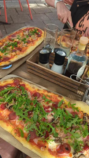 as we got our drinks more people began to arrive and a women and a child sat next to us. They ordered their food after 10 minutes of being seated (ordered with the same waitress) and after 10 minutes received their pizza and a child pizza. now our orders were not hard to fulfill, a simple margarita pizza and the carbonara. however people who arrived after us have seemingly been getting their food before us. they have also received free pasta chips on most table if not all of the table who arrived after us but not us. as the waitstaff who previously denied us a table walks past he scowls and gives off rude looks.